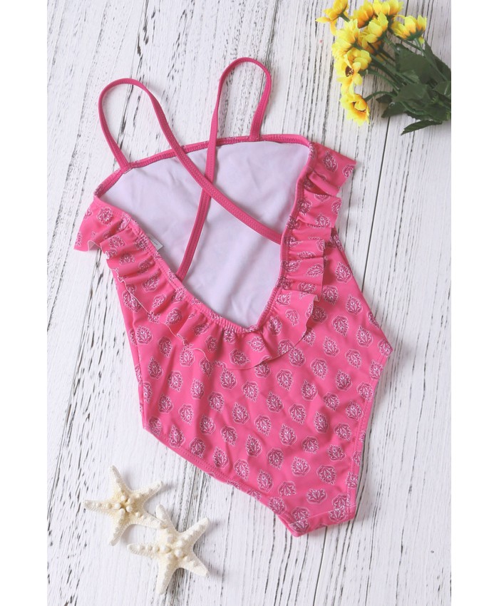 Little Girls Crisscross Open Back Printed One-piece Swimsuit