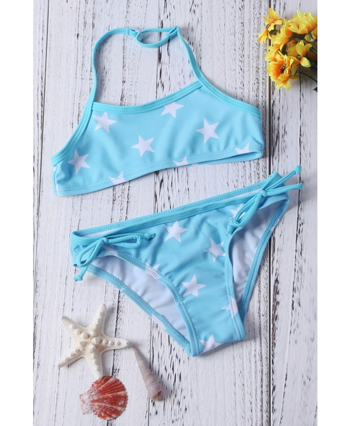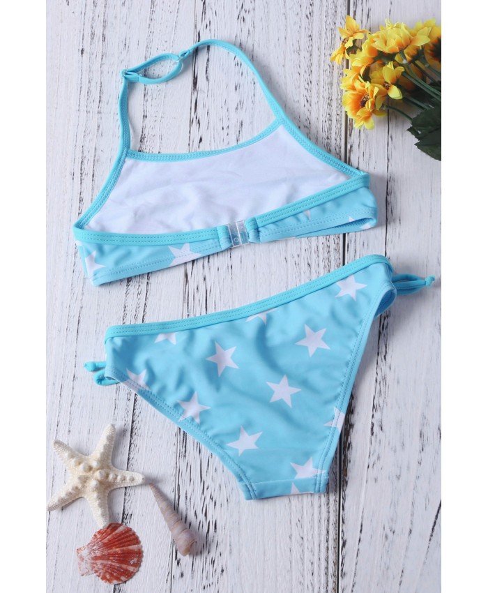 Little Girls Halter Neck Stars Print Blue Bikini