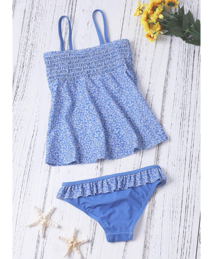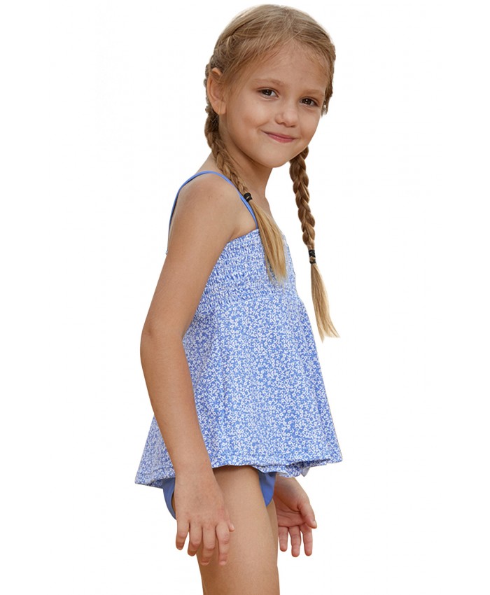 Blue Printed Kid Girls Tankini Swimwear