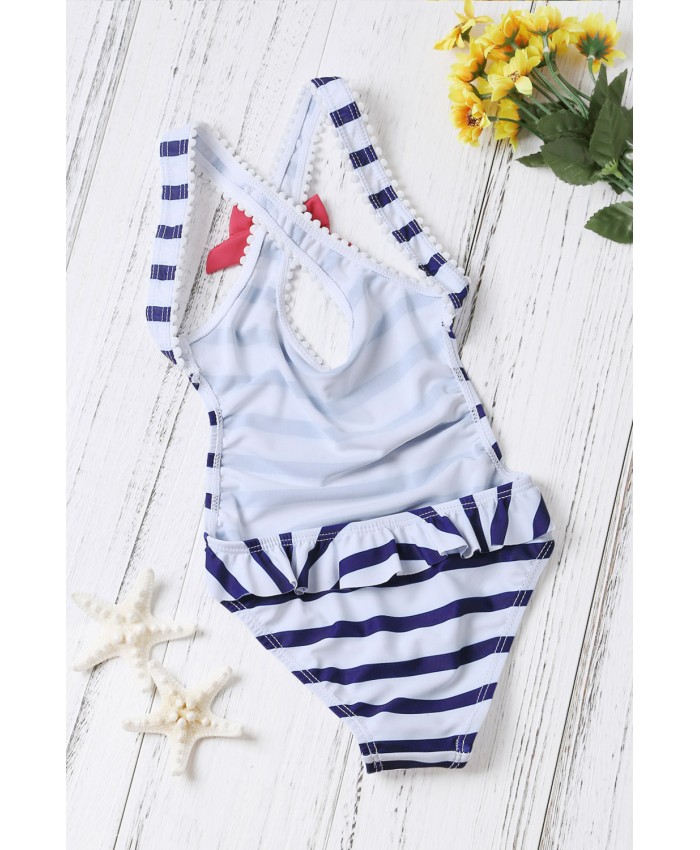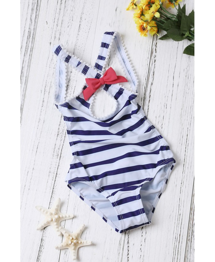 Navy Blue Striped Cross Back Maillot for Little Girls