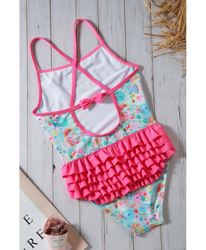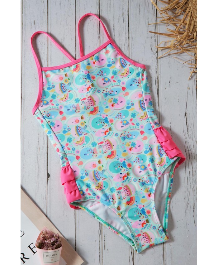 Girls’ Cartoon Fish World Ruffle Back Teddy Swimsuit