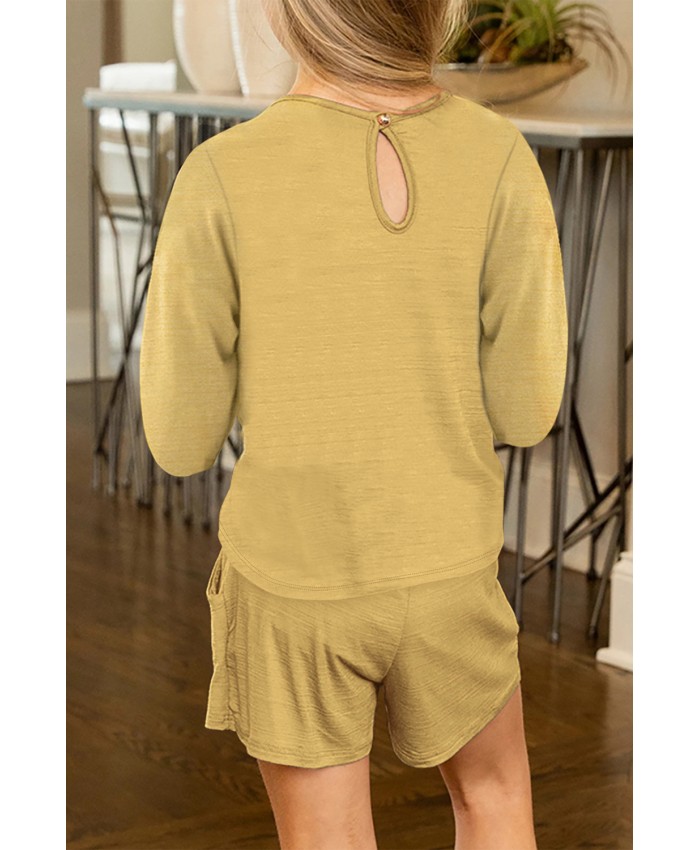 Yellow Little Girls Casual Long Sleeve Pullover and Shorts Set