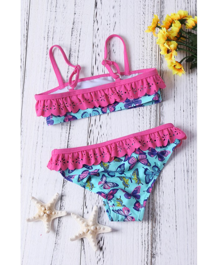 Sweet Butterfly Print Ruffle Child Girls Bikini Swimwear