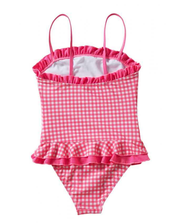 Ruffle Trim Red Plaid Little Girls Swimsuit