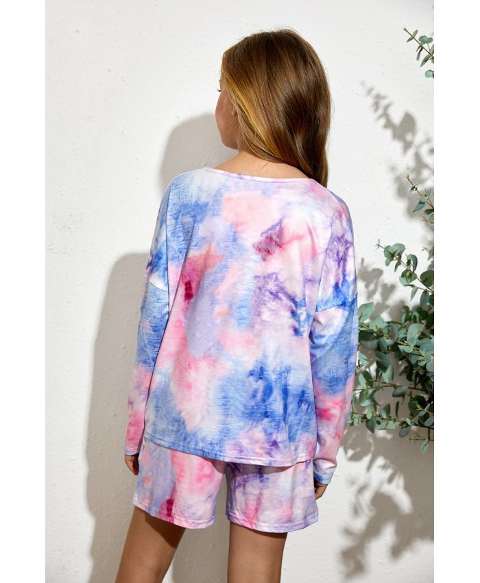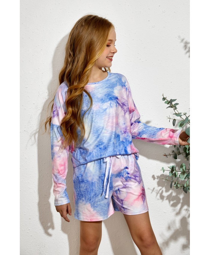 Sky Blue Little Girl Long Sleeve Pullover and Drawstring Shorts Set
