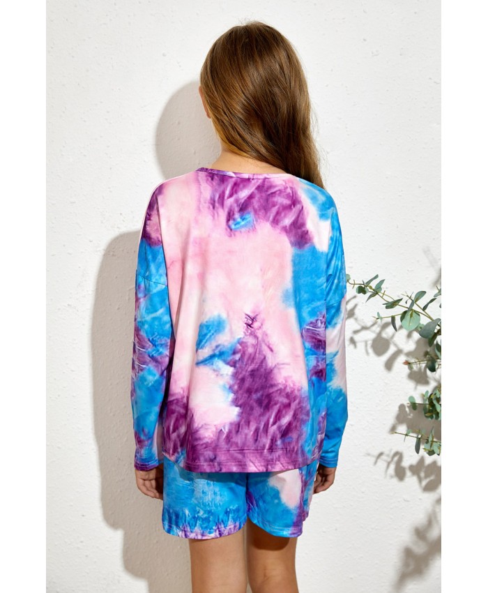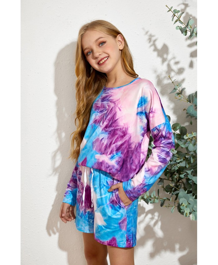 Purple Little Girl Long Sleeve Pullover and Drawstring Shorts Set