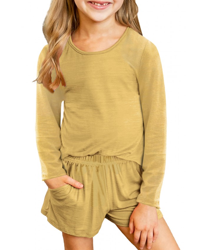 Yellow Little Girls Casual Long Sleeve Pullover and Shorts Set