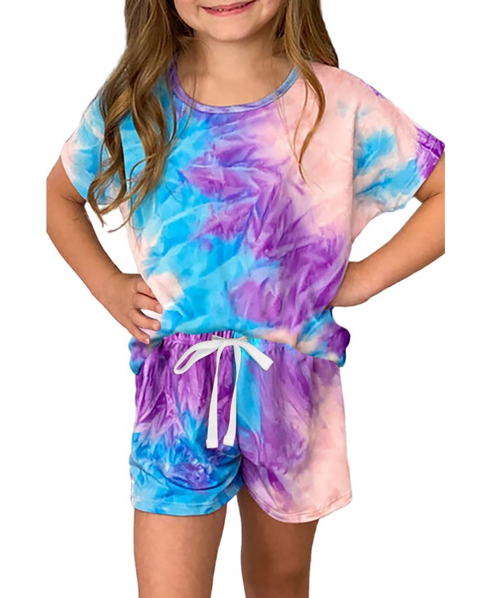 Purple Girl's Tie Dye T Shirt and Drawstring Shorts Set